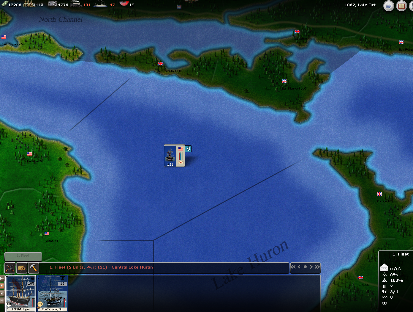 Gray Fox wrote:I posted a while back that the naval commanders actually decrease the runners ability to evade contact. I'm not familiar with the actual game mechanics, but from what I understand the Union Blockade should get an opportunity to detect each stack of runners each turn. So more stacks of runners means more opportunities to be detected and attacked. One stack faces only one chance to be detected. Stacks of single units don't get an evasion bonus over one stack. So, one stack of runners with no commander set to Green/Green, evade combat, gets my vote.