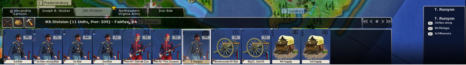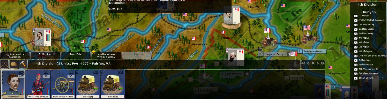 Captain_Orso wrote:This is a completely different issue, and without 'theater' command-structures, I don't think there is much that could reasonably be done here. There would have to be some way of assessing a theater having a measurable amount of importance--number of men under command, proximity to strategic areas, etc. Otherwise one could take McClellan and put him into Boston to command the Mid-Atlantic theater and he'd be a happy camper, which isn't historical at all.