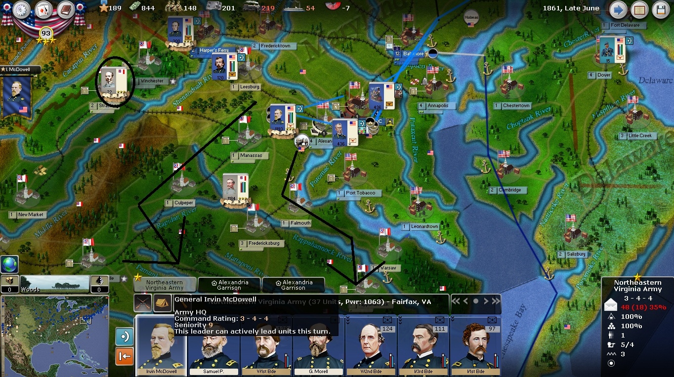 Conclusion: It is too soon to seriously undertake either option. I need more forces and reserves before departing Alexandria. The Vally Army represents a wildcard. At the end of the day, I need to decide if my goal is to capture Richmond or destroy the rebel field armies...