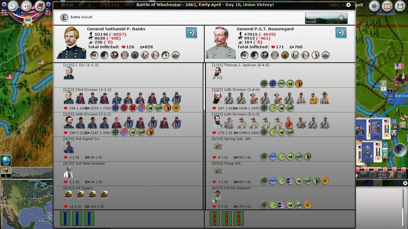 Q-Ball wrote:Good AAR, like the style. Randomized generals makes an enormous difference, particularly for the Union. Having McDowell be a 3-4-4 is pretty big, he is usable now the entire game. I also separates all the 3-1-1 generals for sure.