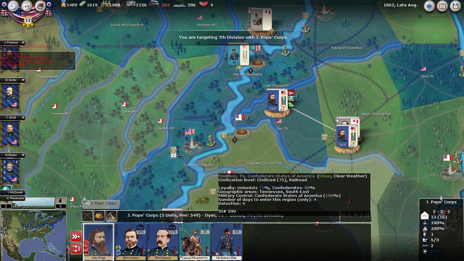 Action around the Mississippi are looking quite now that we have flooded the area with reinforcements.