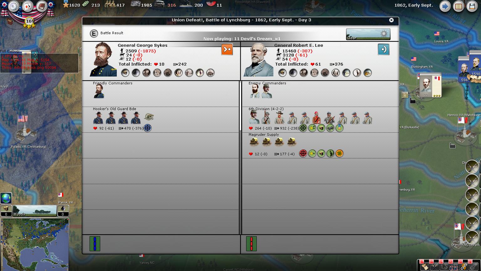 The South is trying to rise again, and soon, They beat back both flanks I have with The Army of NE Virginia.