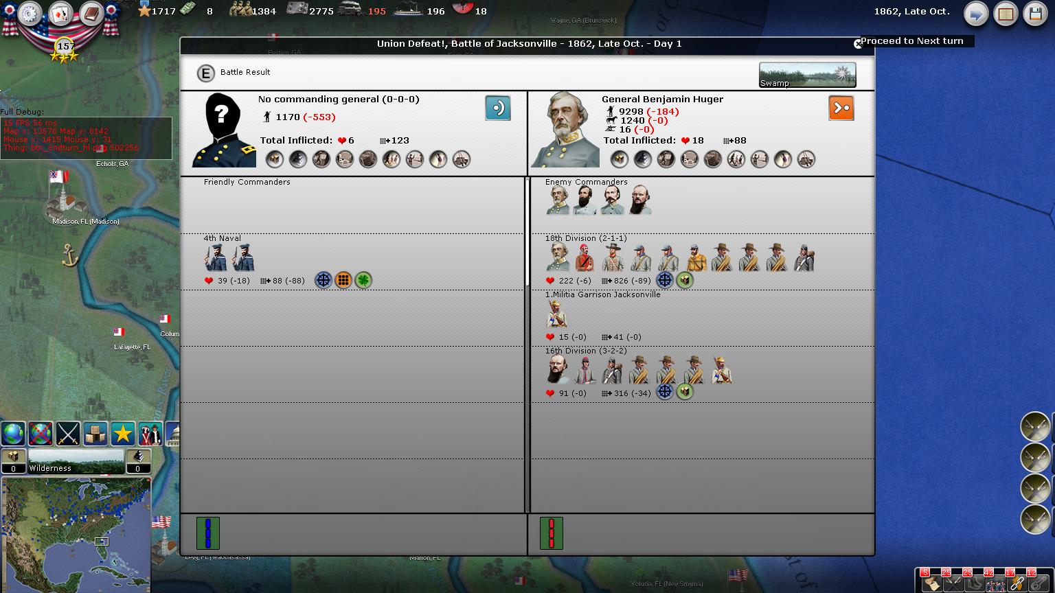 The CSA was not messing around with our FLA invasion no more. They redeployed Huger from Charleston to the FLA East Coast.