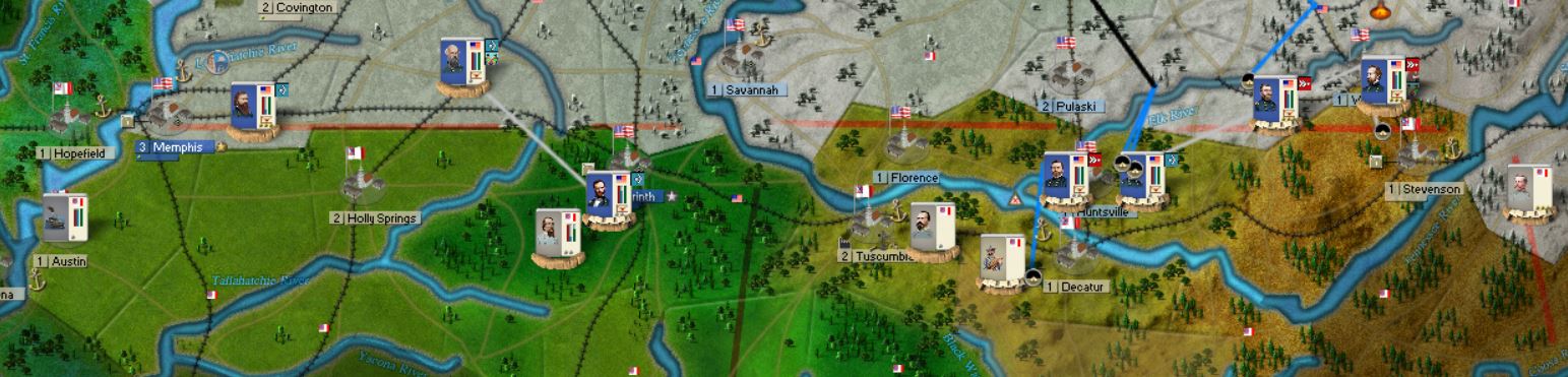 If this line is broken, then I'd go to spot defenses. Nashville, Memphis, Chatanooga, Corinth with militia entrenching from the start. Nashville is a bit exposed as the Union can invade south of it and possibly cut off supply, but with Chatanooga in CSA control, there's a solid supply line into it. So it could be held.