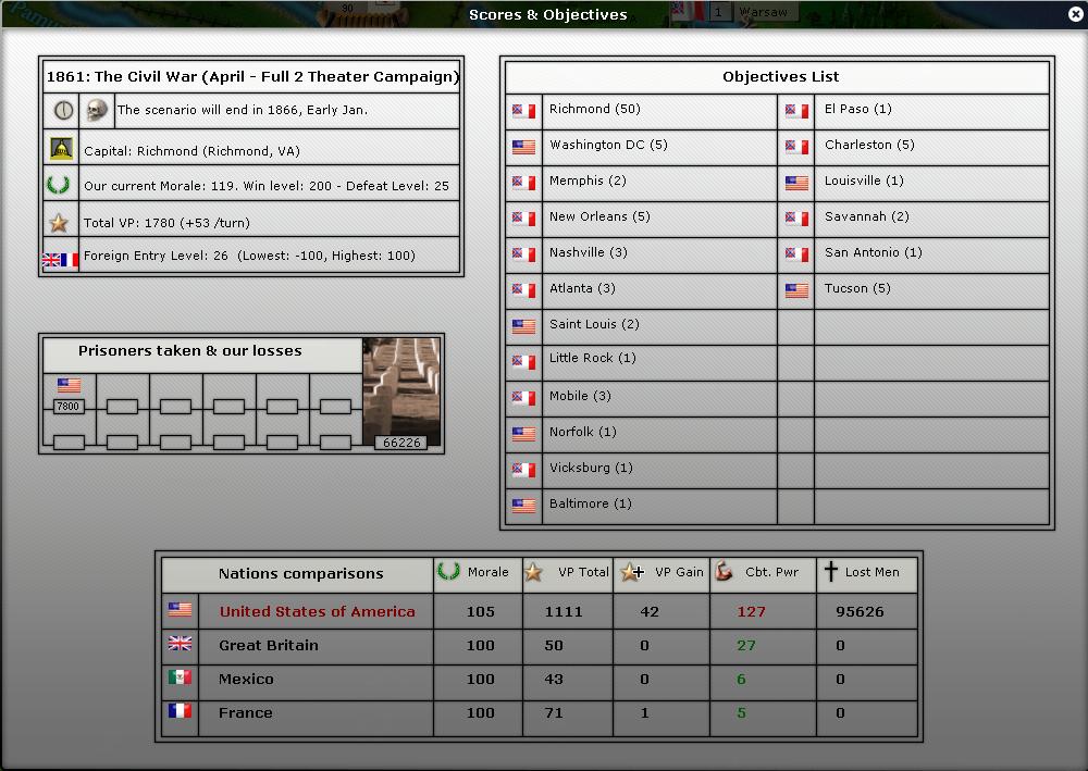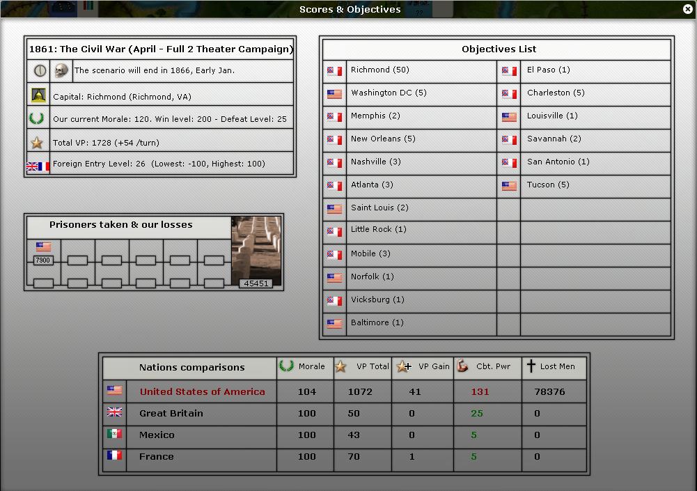 I'm considering another option : move my capital to Atlanta. At least if Richmond is captured I would not suffer from the NM cost.