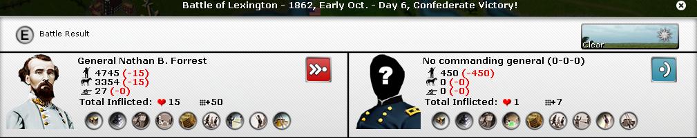 As I was fearing, Lee has been switched to attack mode and two battles ensued in Suffolk. fortunately the MSG with Polk succeeded: