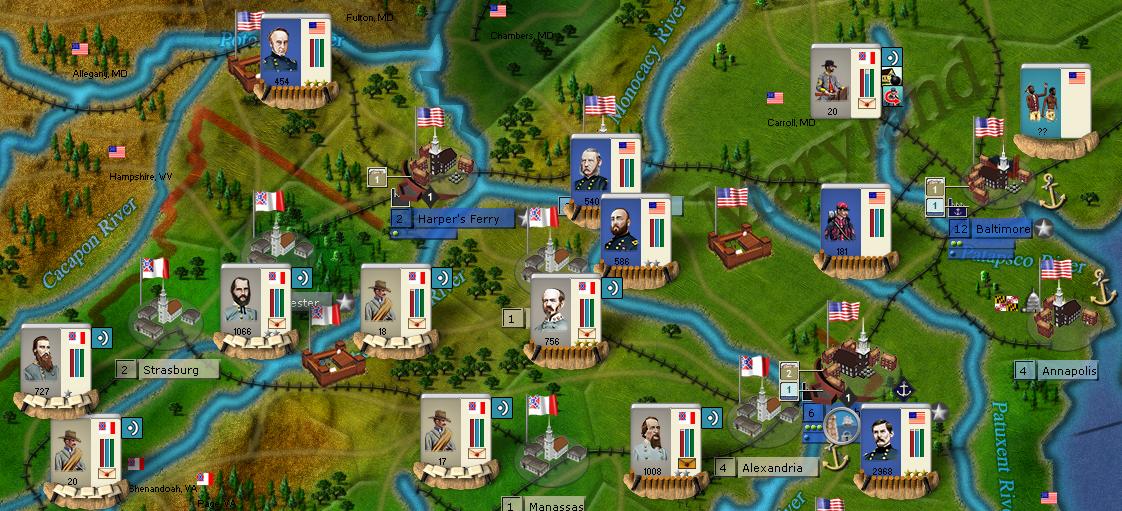 In Virginia, I moved Jackson and Lee behind my line of defense on the Potomac to take advantage of the MSG :