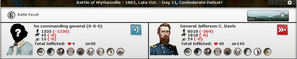 There is a full union division in Whyteville (see resolution post above) with the exhausted cavalry force that has flee from Lexington (NC) area. But it has no supply wagon so I expect it to move toward Prestonburg where a supply unit is located (GF can move the wagon to Whyteville but with the winter weather it is not sure the supply path reach the town).