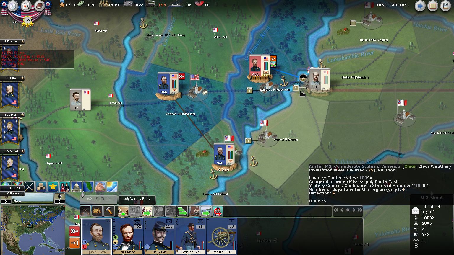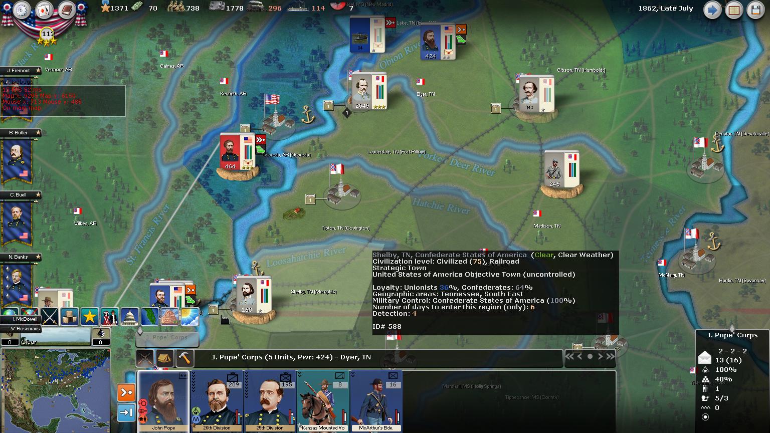 Action around the Mississippi are looking quite now that we have flooded the area with reinforcements.