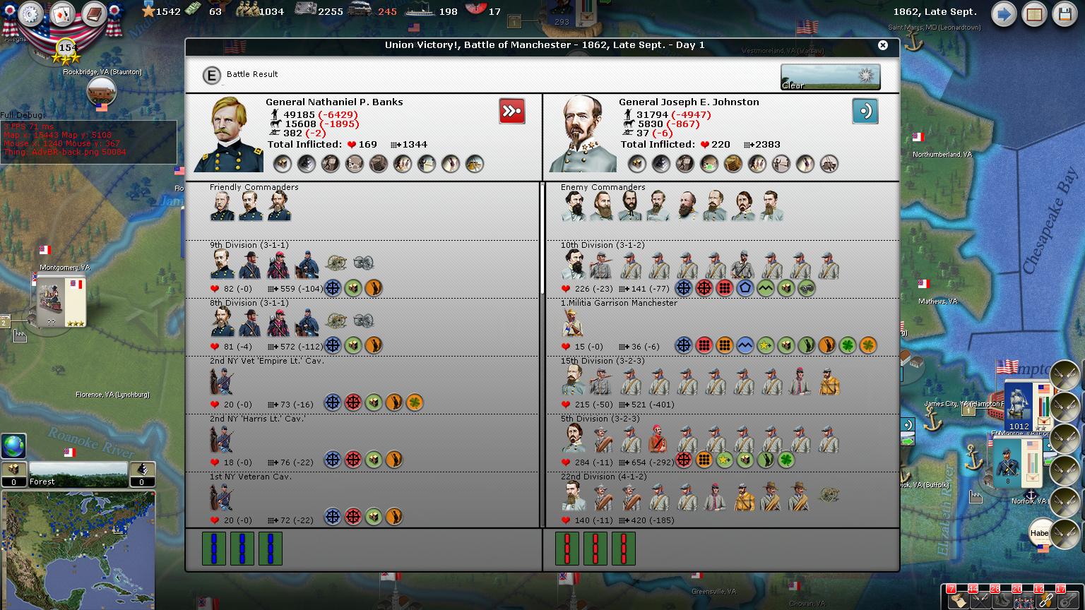 The Army of the Potomac including most of its corps surround Manchester VA and suffer heavy casualties. We have more more on the way to fill the ranks.