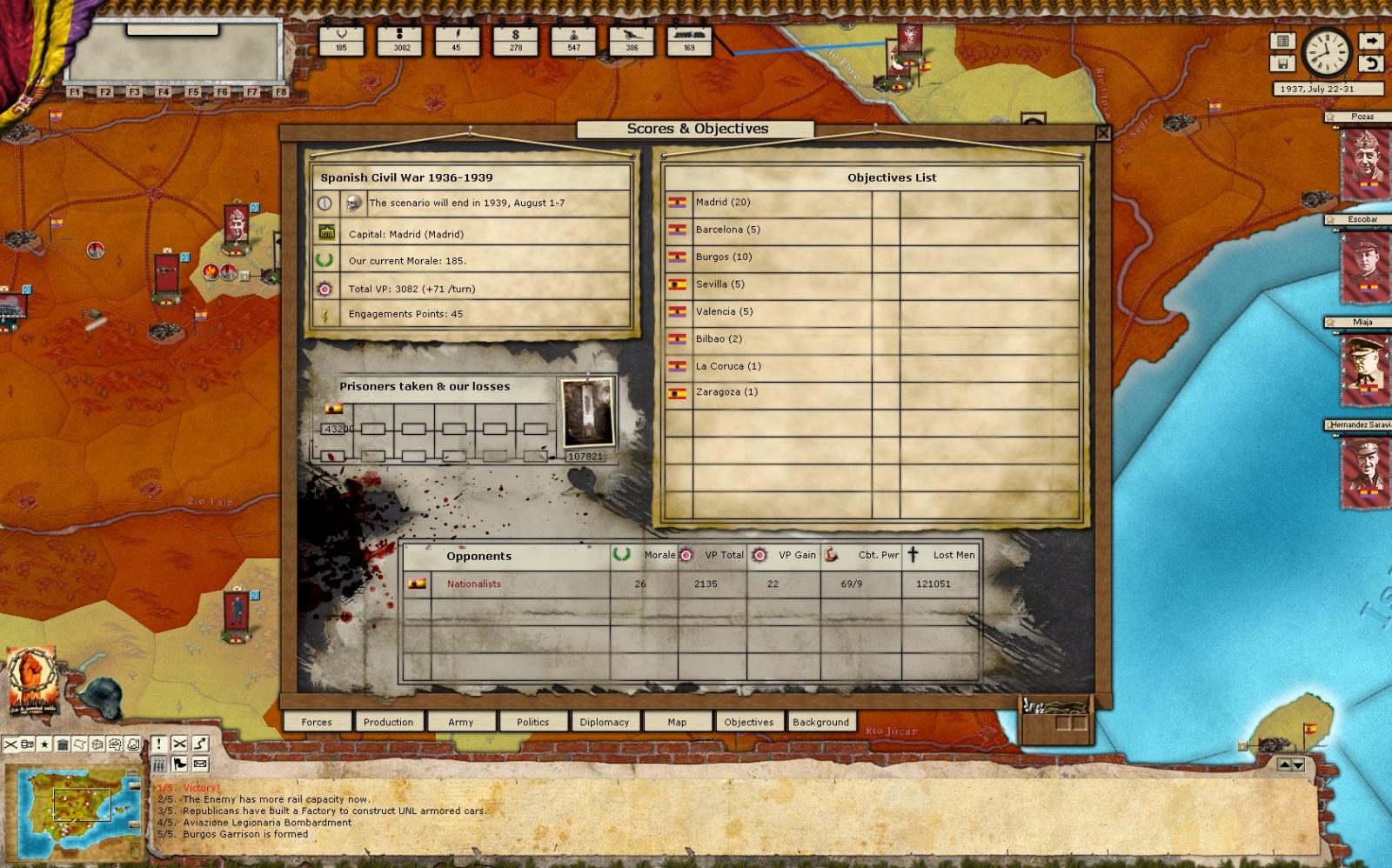 After enemy main forces at the North were destroyed I threw my most strongest formations to the South pushing back last Nationalists rush to Madrid.