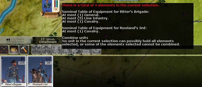 - Ritter`s brigade in Santa Fe city, South Santa Fe region, starts with only 2 infantry regiments iirc. Once i made a depot there, it gained a cavalry regiment but after 10 turns or so sat there, inside the city with a depot, it hasnt got the other infantry regiment the table of equipement says it should have. I can add an infantry regiment ( one militia upgraded to infantry) with the "merge" button, but the brigade doesnt gain it as "free replacement". Dunno if there is any issue with this brigade ( it is the only brigade i know with 3 infantry regiments and one cavalry regiment).