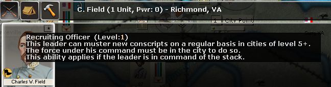 The tool tip does not say that the leader needs to actually command any troops. He only has to command his stack, which can be a stack of one: himself.