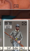 Note the small box just above the unit. The mouse cursor didn't show up for some reason in this screen capture, but just imagine grabbing the 82 pwr AL unit and dragging it to the desired place on he map as you watch it become a dot in a box. It's jut wrong and is the only fella on the CSA side to be shamed in this way.