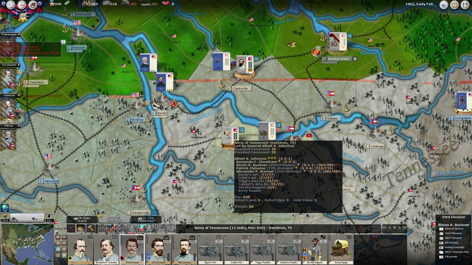 PS - RE my latest save posted just above, after reloading the game, AS Johnston's Army reflected more accurate numbers.