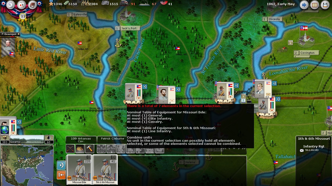 W.Barksdale wrote:Early May 1862 you get the 5th and 6th Missouri unit which you are supposed to be able to combine with the Missouri bde.