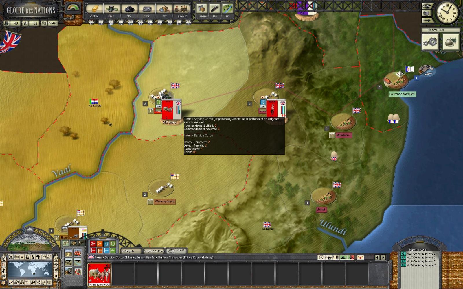 here are the pictures, "my" units land in Lybia (before Egyptian script, is easier than going from Egypt, while Brits don't have the faintest interst in either Cyrenaica or Tripolitania (the time denominations), and ... no supply there either :( and, anticipating Rhodes schemes "Africa from Cairo to the Cape) bravely begin a journey (a "trek") from the Lybian desert to Zululand, sort of