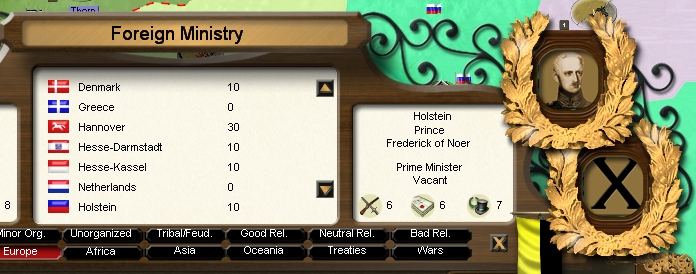 But it seems those of noble blood do rise from the dead: In the Diplomacy screen Prince Frederick of Noer is back ! The post of the Prime Minister remains vacant though.