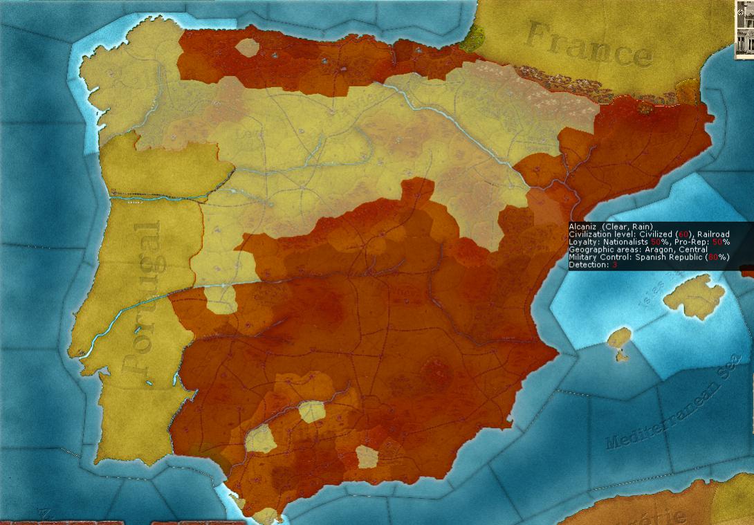 During the whole period of the war, there was very little activity on the Aragon/Catalonia front with both forces staying on the defensive. The only region to change hands was Alcaniz. In early July 1937, the whole of Catalonia still remained in Rebublican hands.