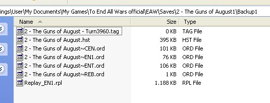 Guns of August save game with 3 backup folders. Backup3 folder contains saved game from 3 turns ago.