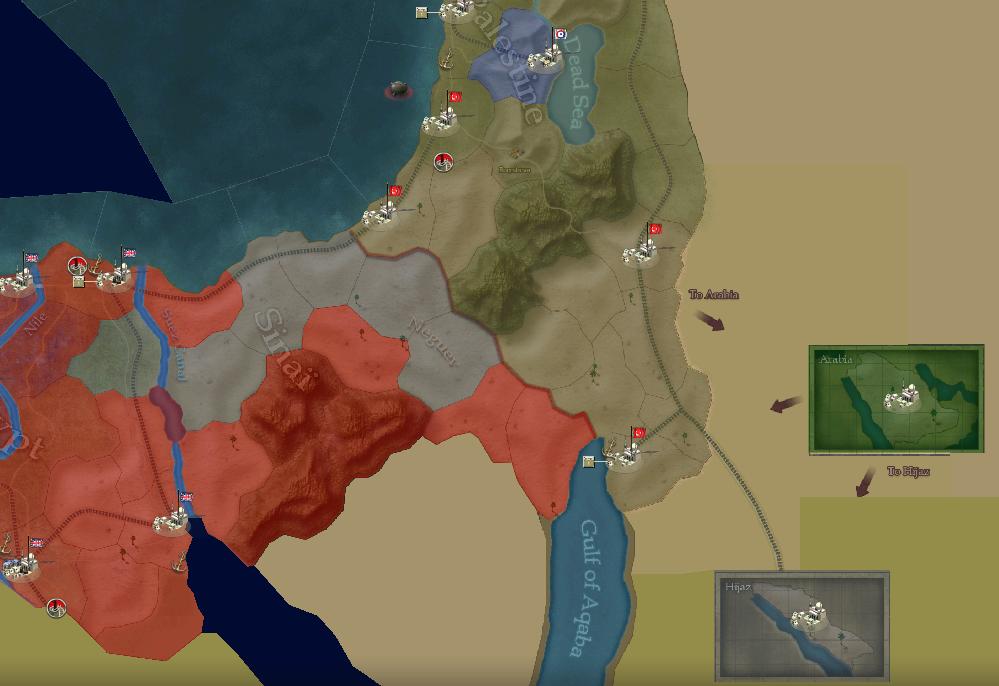 There is a lot of give and take there. Arabia joined the war, only to lose its capital for a short while. Ottoman troops are by Cairo, and Allied ones - in Jerusalem. Overall, however, Western Entente is doing better there than 6 months ago.