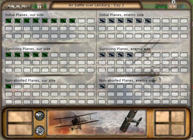 And the battle tally? 47 losses, 22 kills. No Russian plane made it out, according to the casualty listing. In reality, 17 planes were still functional after the turn.