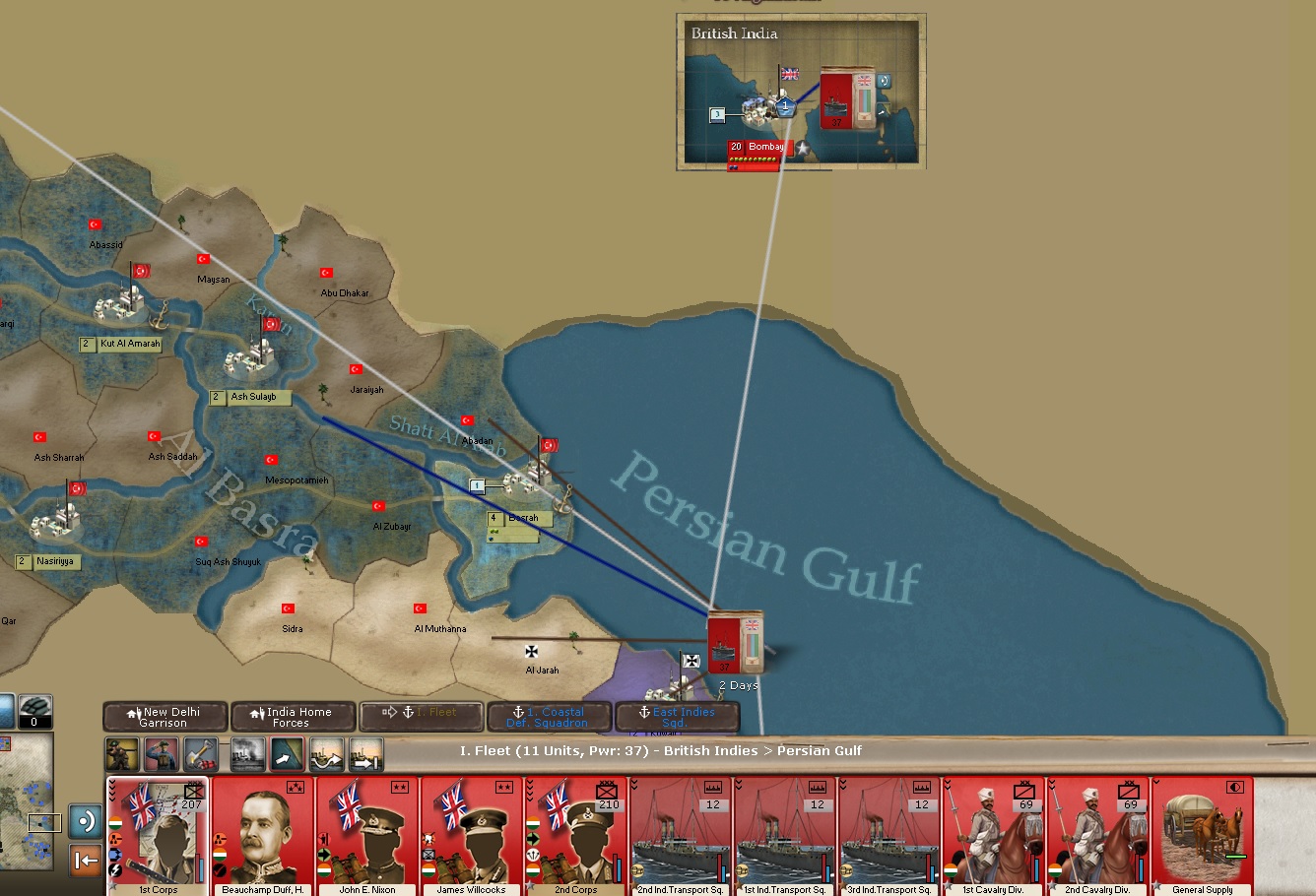 We're assaulting Basrah and we're building several units in India. I expect to take Basrah. I forgot the troops here and have let them sit a couple of turns. They can cause some real trouble in the next few turns.