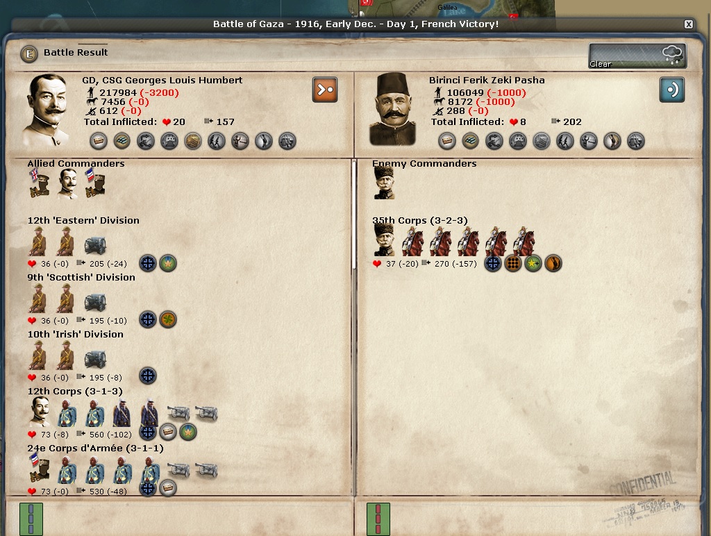 As you can see... it was a stalemate. It was a very big battle and I was nervous to see that the CP/Germany had 300K committed to the battle. I am fortunate to get a stalemate.