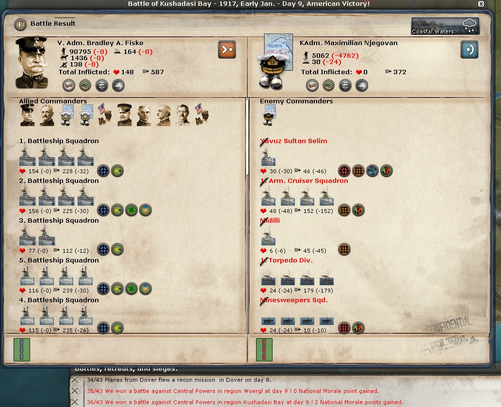 And now the big news. The USA has joined the WE. This has boosted my morale to 101!!! And I get a lot of troops. I bought about 10 USA infantry and 2 USA marines. And Black Jack Pershing will lead them. I also immediately ordered 6 USA generals.