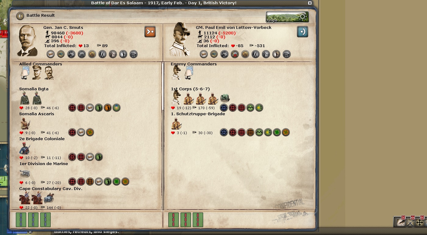 This guy led me a merry chase at finally bringing him to heel. there were several Dar Es Salaam battles and I am essentially in control of it.
