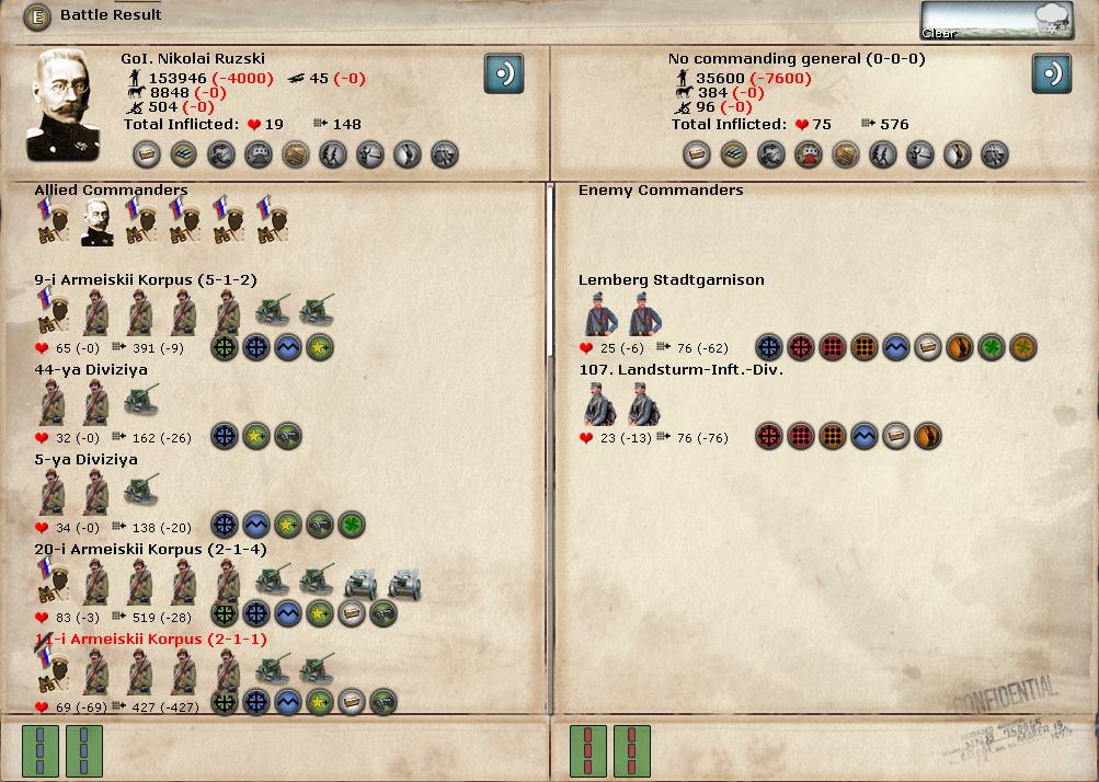 There have been numerous skirmishes around Lemberg, none truly worth mentioning except for this one: I may have won the battle, but look at the cost - an entire Russian army corps wiped off the map, despite orders to maintain defensive positions.