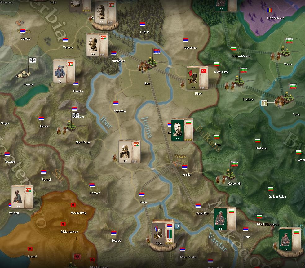 Times are tough in Serbia following the loss of their capital. Any able man is rallied up in Nish; battered Montenegrin army is pulled back to Skopje. It is clear that Serbs are out of this fight, and impending entry of Bulgaria into this war will not make things any easier. The only thing left for Serbs is to take down as many enemies with them as they can. And maybe tie up an Austrian army of two through the summer.