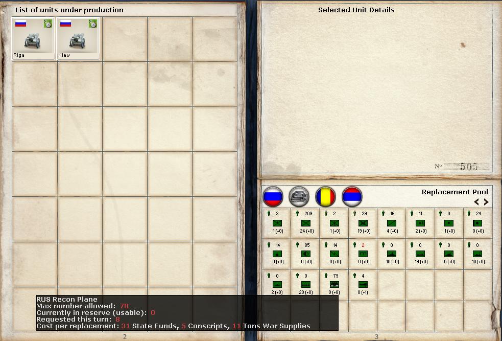 Central Powers have been taking a toll on my aircraft - at least 40 have been shot down already, and I am yet to get a kill in return. While all that money was desperately needed to build artillery, I do have to stop and replace my lost aircraft. At least tech levels are similar - 2 levels +40% for CP, 2 levels +10% for EE, and I should get newer, level 2, planes that may still face remaining level 1 fighters in CP units.