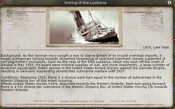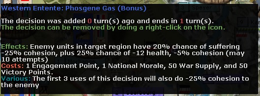 H Gilmer3 wrote:The morale falls 1-2 a turn for all sides. War weariness I guess. All of my NM gains have either been from events or naval battles. I have never received an NM boost from a land battle no matter how lopsided the win was. I have not lost any NM due to a land battle, either. Edit - take that back about land battles. I know I received 1 NM point for the capture of Tsingtau, so I imagine I gained 1 for the capture of Essen, as well.
