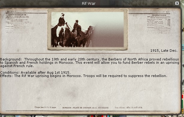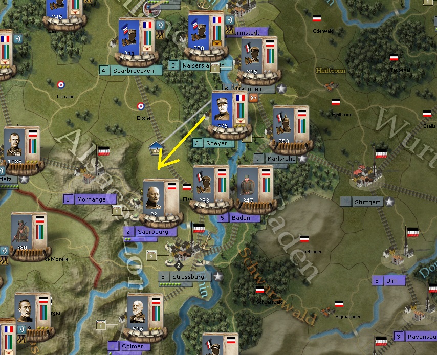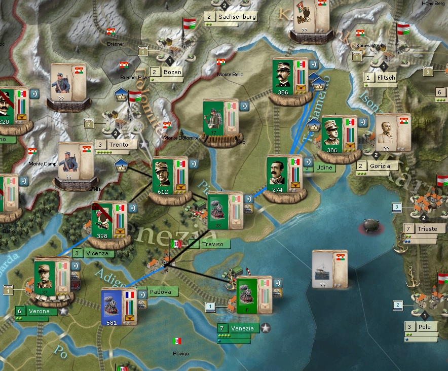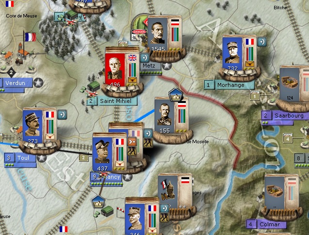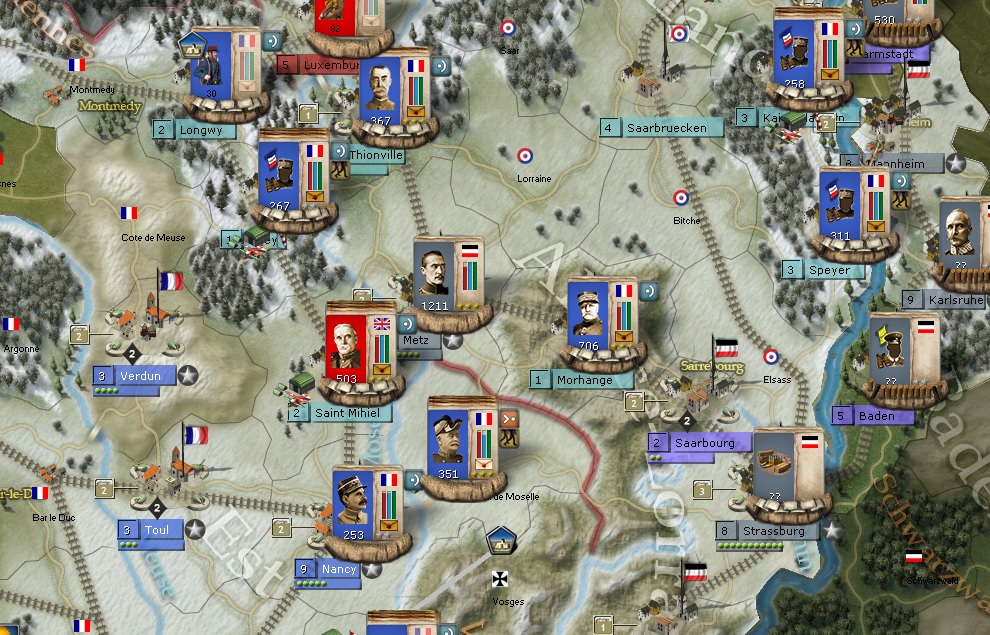 hajbrad971 wrote:At last found the AAR. Excellent work which I will follow avidly. As I wrote in a post (somewhere else on this somewhat confusing Forum) I am playing the WE using the same battle plan as you have against the Moltke plan from the CP. In general my game has progressed along similar lines to yours but my progress is nowhere near as good as yours has been. My attack through Luxembourg is progressing well but my French Generals seem to have difficulty activating regularly enough to mount a sustained offensive. I have invested a lot of resources in the fight against Turkey in Sinai/Palestine (the BEF is fighting there and is about to be joined by Kitchener). Greece has joined the WE and a joint Franco/Greek offensive is making very slow progress against the Bulgarians. However my NM is only slightly higher than the CP who has made great inroads against the Russians and has almost annihilated the Serbs as far as I can tell. Some specific questions that I hope you can help me with: