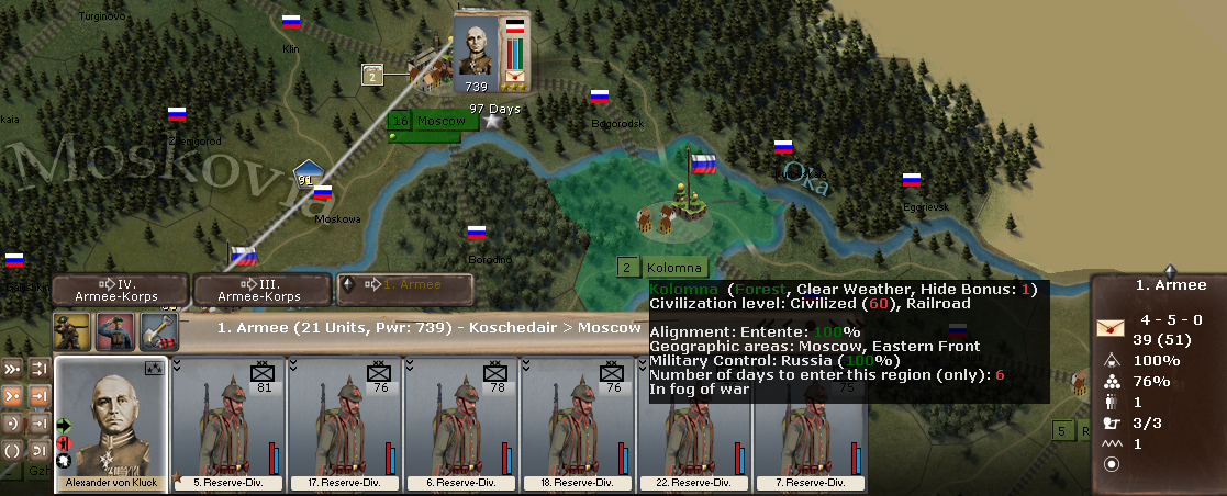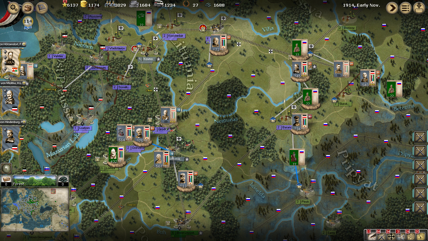 Below's two corps have been busy reducing fortresses, while Falkenhayn leads two corps to reach Warsaw from the East. North of that the Niemenarmee's overstrength corps fights off sporadic divisions attempting to surround him, and Kluck-bored of the lack of action around Minsk heads north to take Dvinsk as a base of operations against Riga