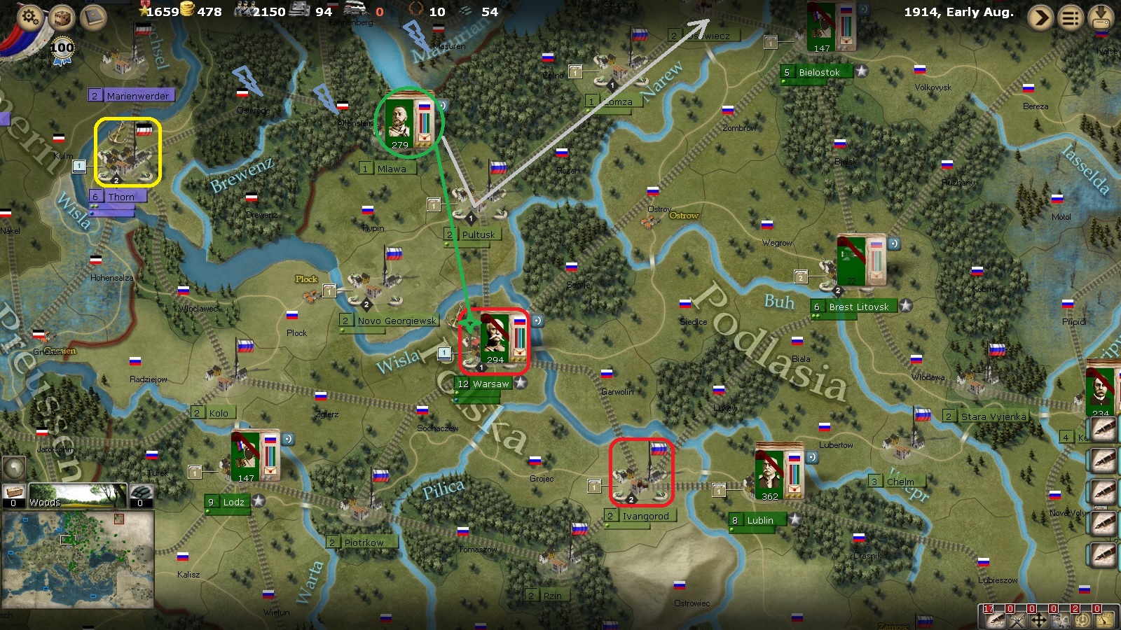 I have dispatched Commander Samsonov to receive his commission in Wilna, and otherwise, I am moving troops towards Warsaw, one of the linchpins to the interior of Poland.