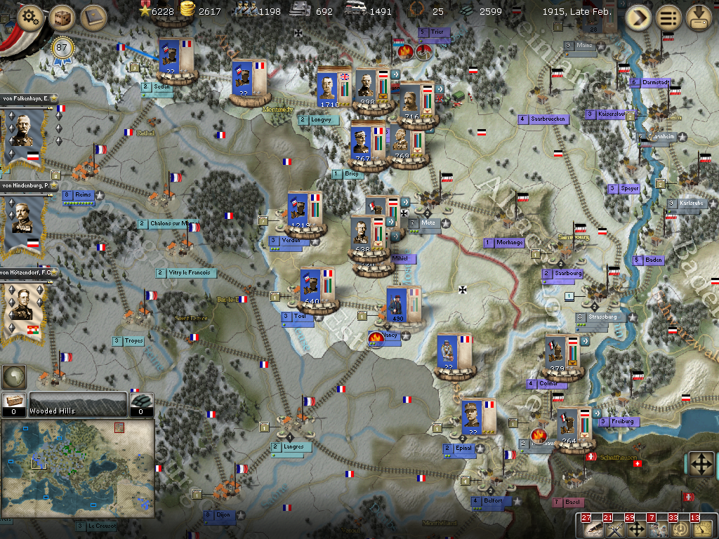 Forces arrive in Val de Moselle, reinforcements on the way to Muelhausen as it's victorious, but small force tries to valiantly hold.