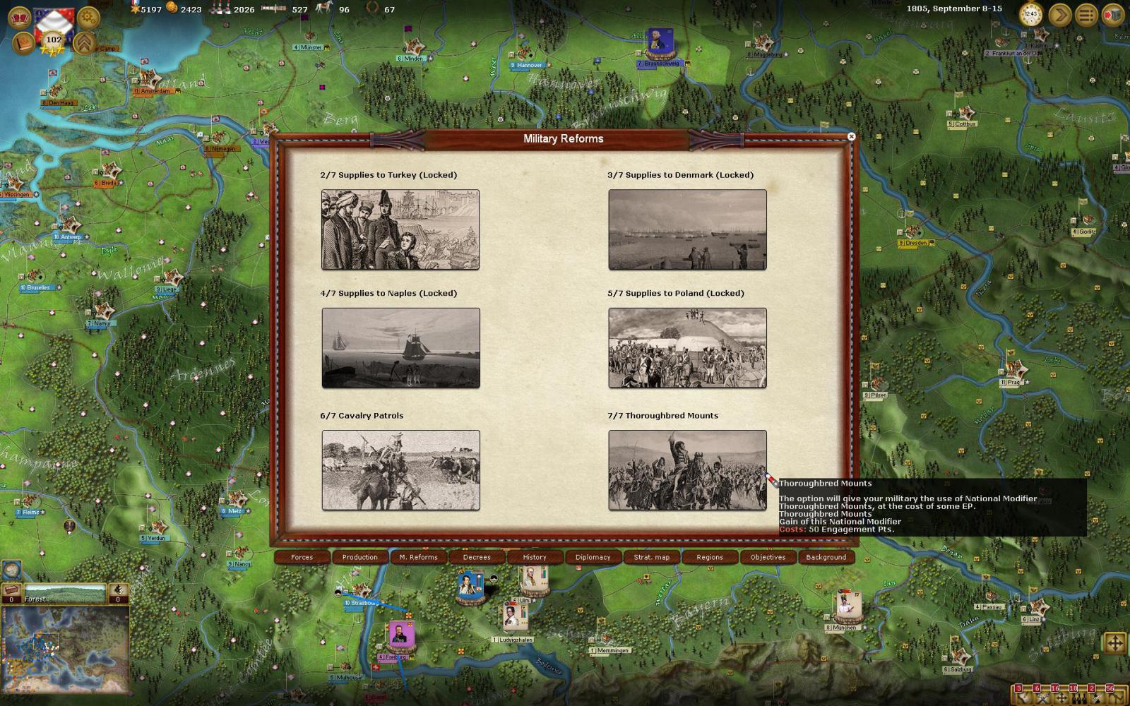 The "Thoroughbred Mounts" National Modifier description is not included in the list.