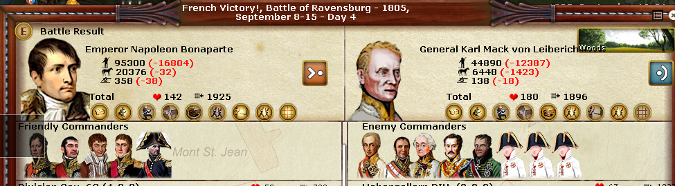 Last question - how can you tell what side is yours in the battle results screen? It is obvious if it's Napoleon fighting, but for someone not as familiar with all the generals, isn't there a nationality flag or some indicator of what side each of the battle results is for? This seems to be an issue with every new AGEOD game, and not until a future patch do they finally include a nationality flag to designate each side of the screen.