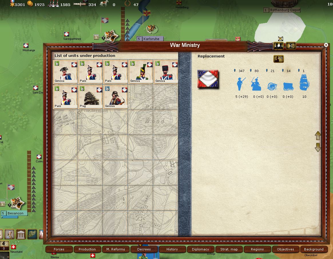 ) And how long will a peace last?Cfant wrote:What I mean is: France crushes Austria in 1805, makes no peace, keeps a small force there and moves around in Austria, killing troops in production. One small force could keep Austria out of play for the rest of the game. Same with Prussia. How to prevent that? Again: Just talking of MP.