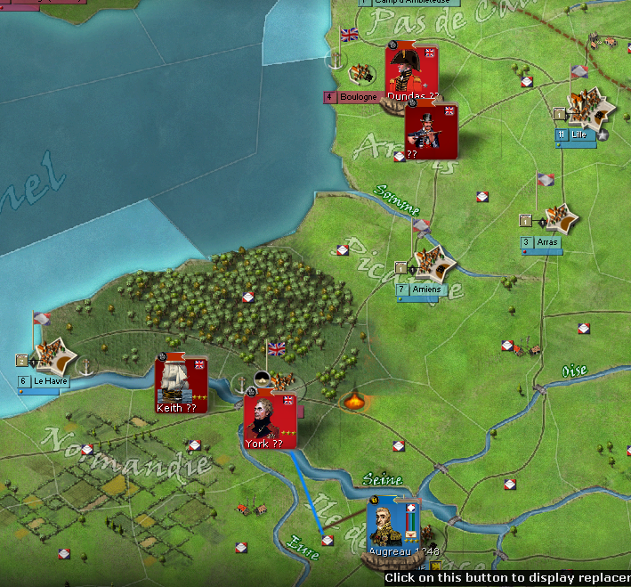 It's raining Recoats. We are trying to pick them up, but it's poring right now. The 7th Corp is in Paris and will hopefully boot out the small Brit force in Paris before York arrives. The 1st Corp will start targeting these small Brit raiding forces and I'm bring Davout over to help whack some moles. York may be a problem. 900 CBT force.