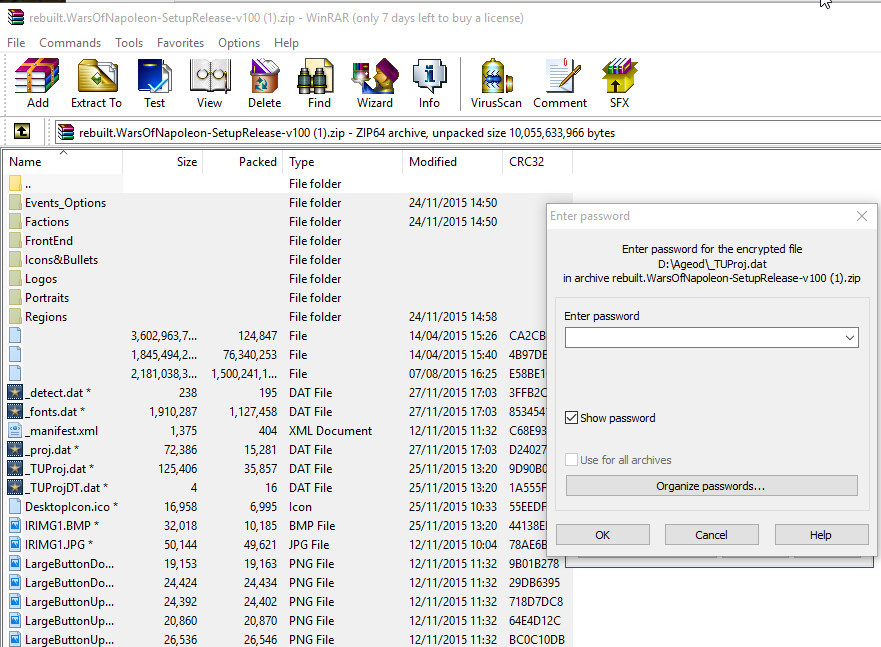 Hello so just my luck, i received my code for my press copy of WON but i am unable to do anything with the downloaded file as it will simple not function as many programs are classing the archive as corrupt hoever on further digging and re-building the archive i am now asked for a password?