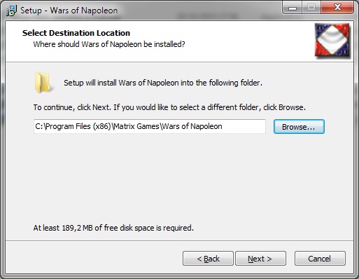 You can either overwrite your current official 1.011 installation or do a copy of it and then install this beta patch onto the copy. Be sure to target the proper directory when requested by the installation program. Usually, if you have not changed anything, the game is in C:\Program Files (x86)\Matrix Games\Wars of Napoleon