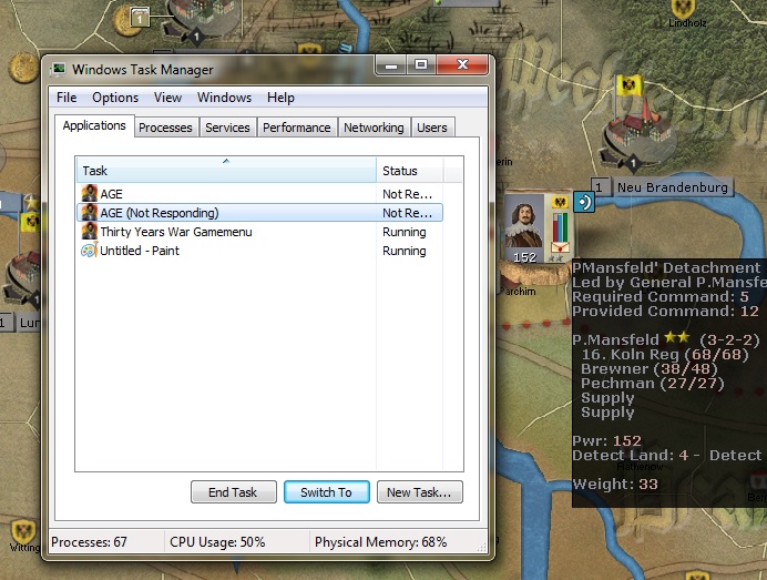 Well its 1636 and the glorious Imperial army is being halted not by the enemy, not by the weather, but by the increasing frequency of game crashes - six crashes in less than twenty game turns. :(