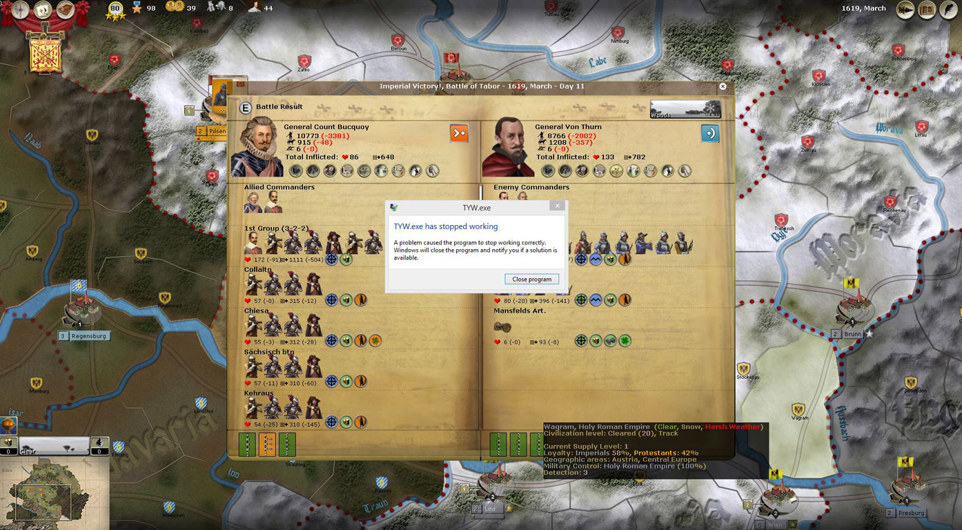 Hi Again.... After battle resolution the Exe. Stopped working and CTD