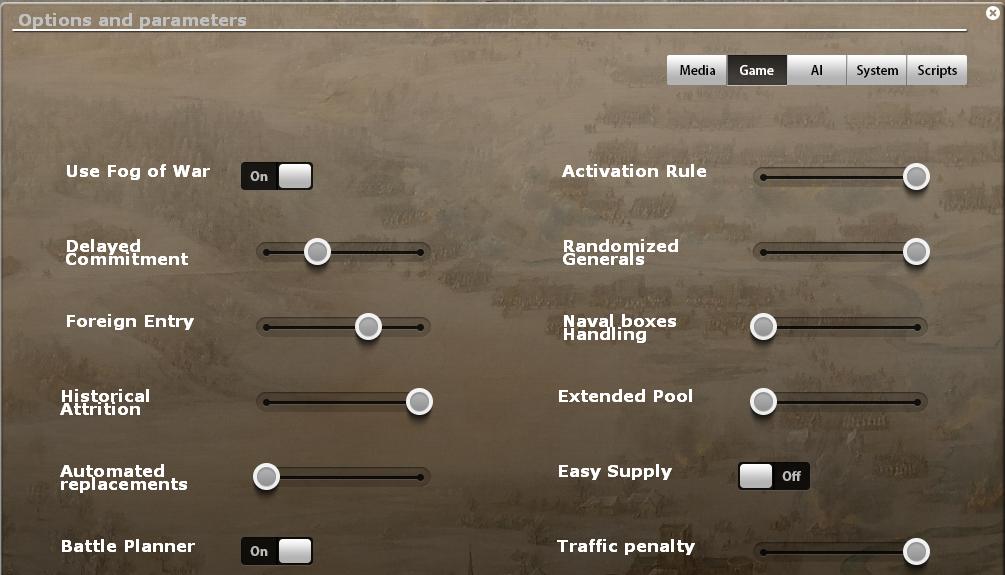 Lynxyonok wrote:I've been thinking about what you said, as I watched an entire Protestant army starve to death just south of Wien. You're right, AI could use help, but I'm going to provide it in another way, as I've tested the historical attrition setting before, and it seemed ok. Instead I'm going to restart, bumping the following settings in favor of AI: