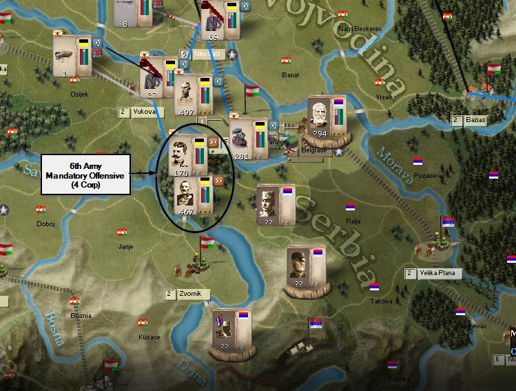 The mandatory offensive called for 20 regiments inside Serbia. These were moved into Serbia turn 1. On turn 2, I didn't do anything else with them because they were already in Serbia. I just got hit with the -10 NM penalty. What did I do wrong? [ATTACH]35131[/ATTACH]