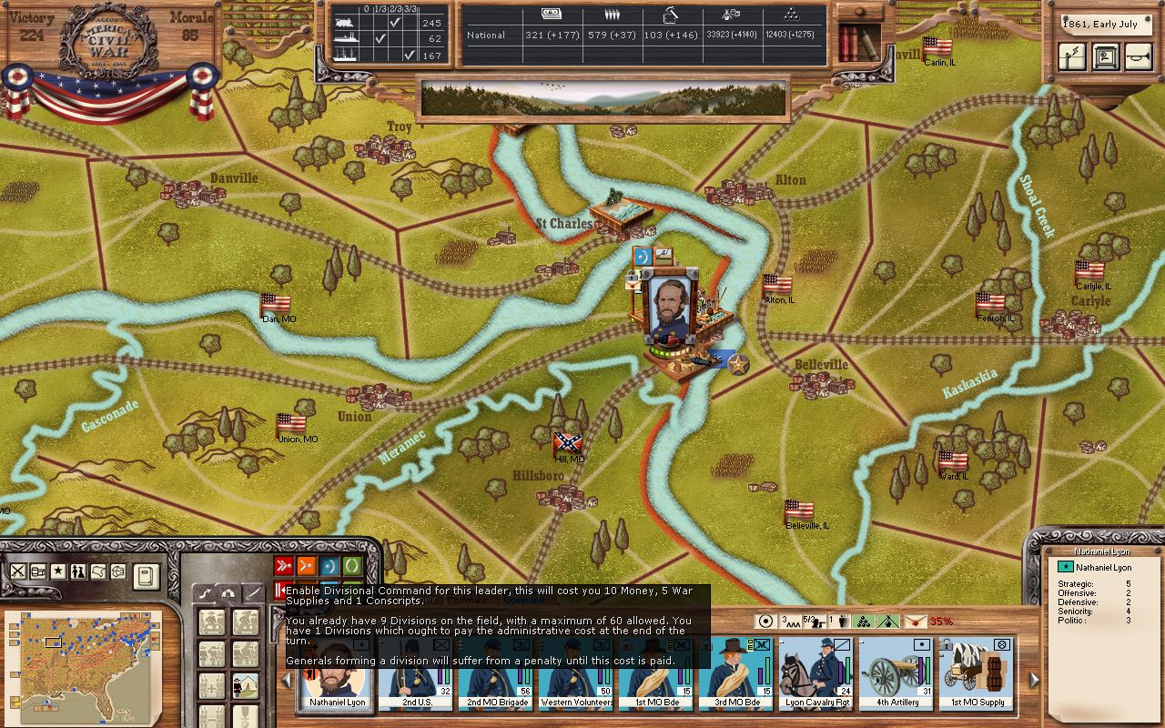 I have a couple one star generals who are sitting with a bunch of men somewhere, just waiting for me to create a division, only I can't. The create division button is highlighted, but I can't create it, even though the commander is active, there are enough elements to make one, I have the supplies needed....all that jazz.