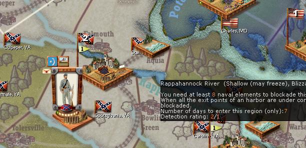 What if I place gunboats in the Rappahonick as shown. It looks like he (Union) can still slip by to Fredericksburg on the left. Of course, I have Ft Monroe and am considering constructing a pair for this purpose.